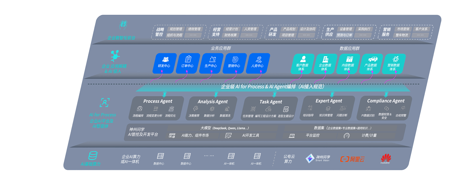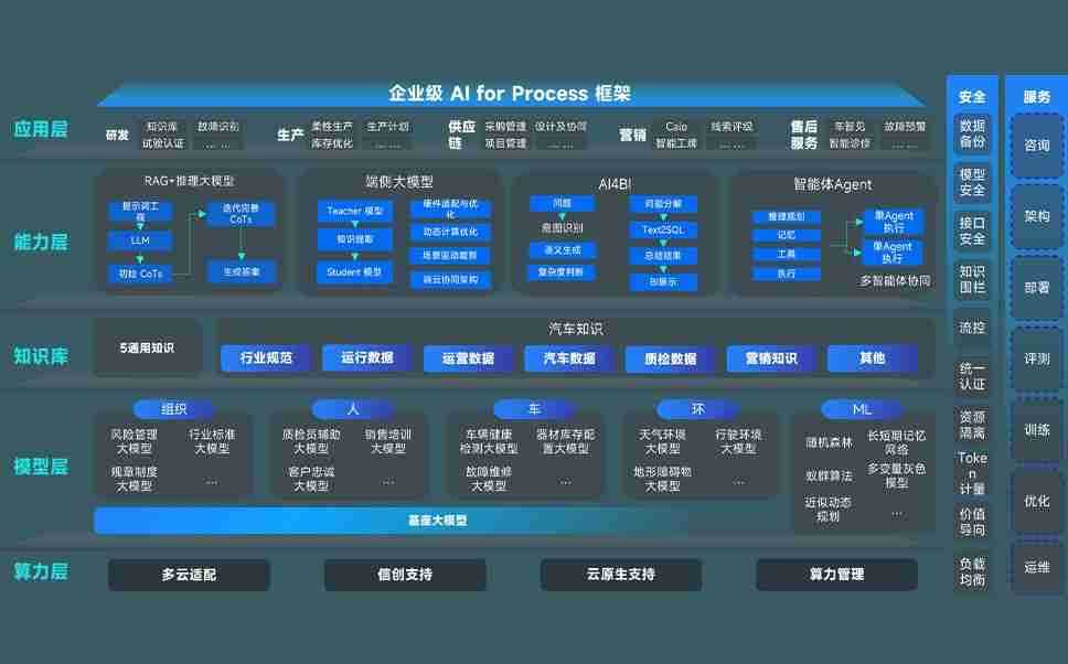 端到端的一站式AI工作空间深度融合了从企业战略规划到日常经营的全流程业务板块,,,定向解决车企内部领域多、、部门多、、、链条长、、场景碎片化等难题,,支持车企快速构建以AI为核心的生产力写作体系,,,,实现任务执行与AI能力的无缝集成与交互